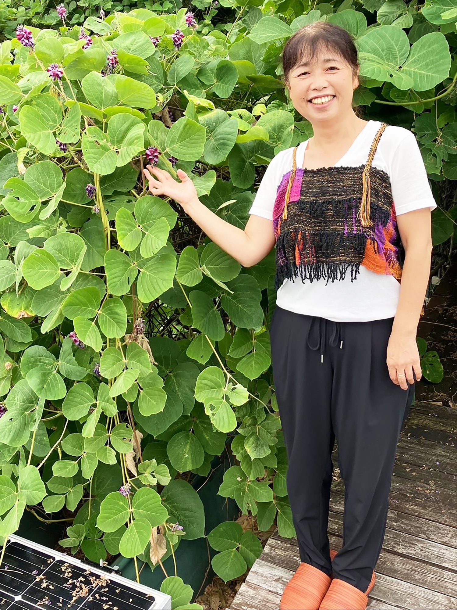 5センチ幅3.5メートルの布で、らせん仕立てのベストを仕立てられました。『分け織り』や『耳出し織り』がアクセントになって、コンパクトながらインパクトのある一着になりました。