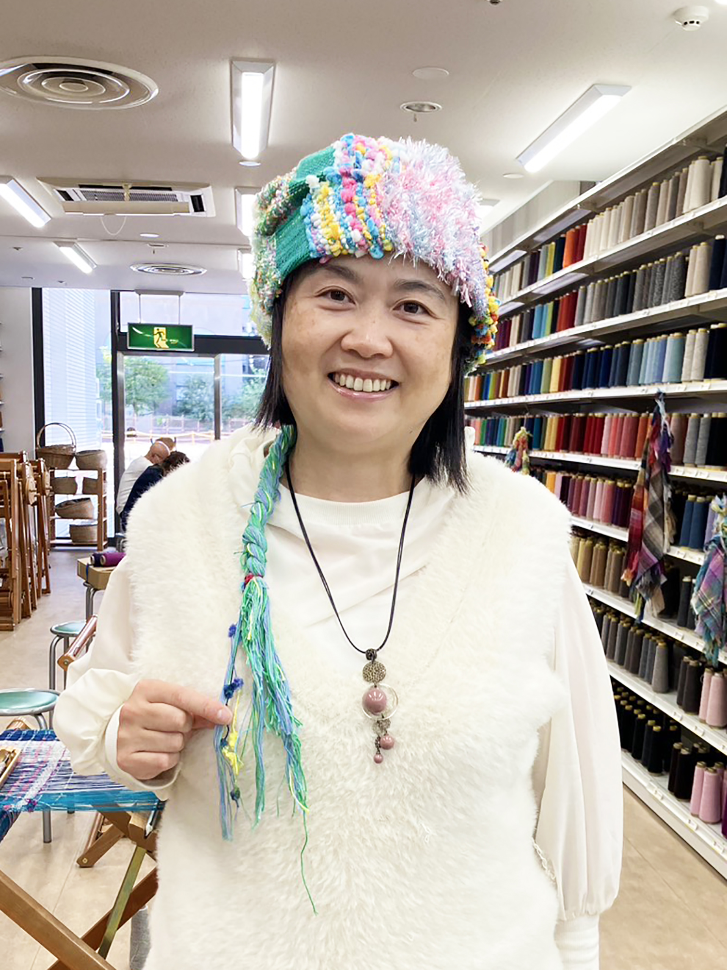 大好きな明るめグリーンと、可愛らしいぴゃむぴゃむやーんをふんだんに使って、初めて『スーちゃん帽』にチャレンジされました。