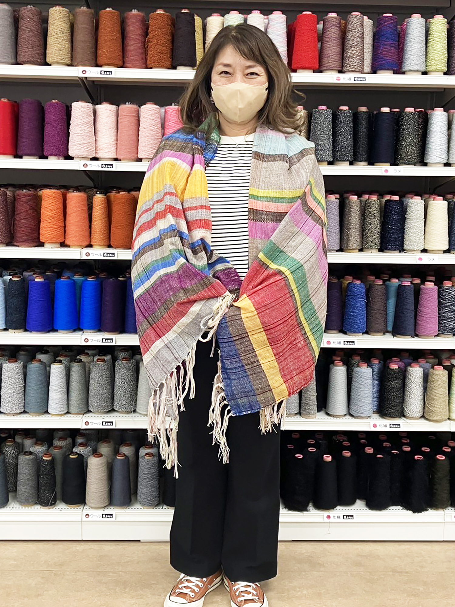 何度もお越しいただいているリピーターさんですが、ついに念願の大判カシミヤストール!市販品では見かけそうにない、独特な色使いがとってもおしゃれです。