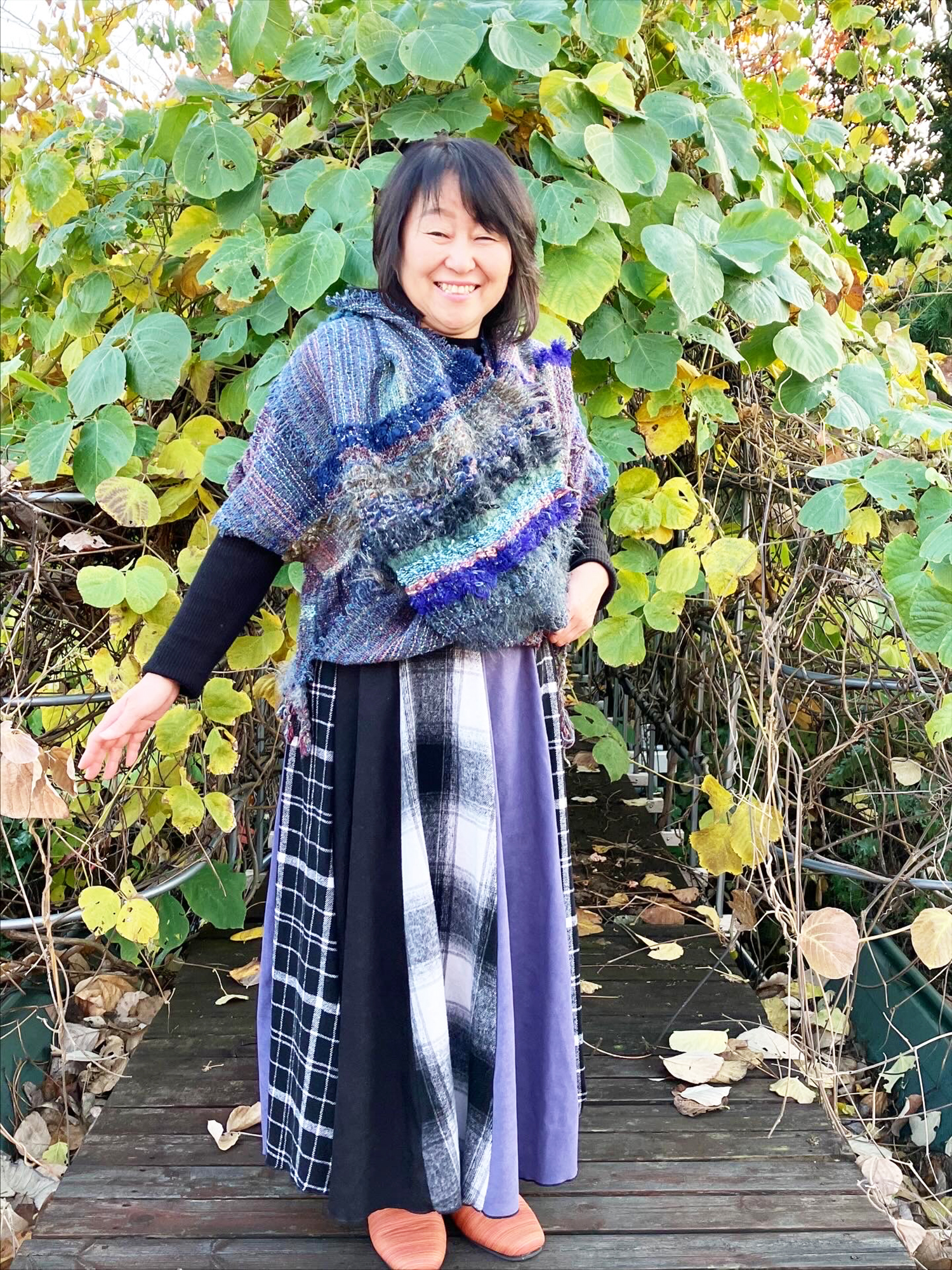 ストールとトップスが一体型になったベストです。見た目はとても複雑そうに見えますが、実はカンタンお仕立て。