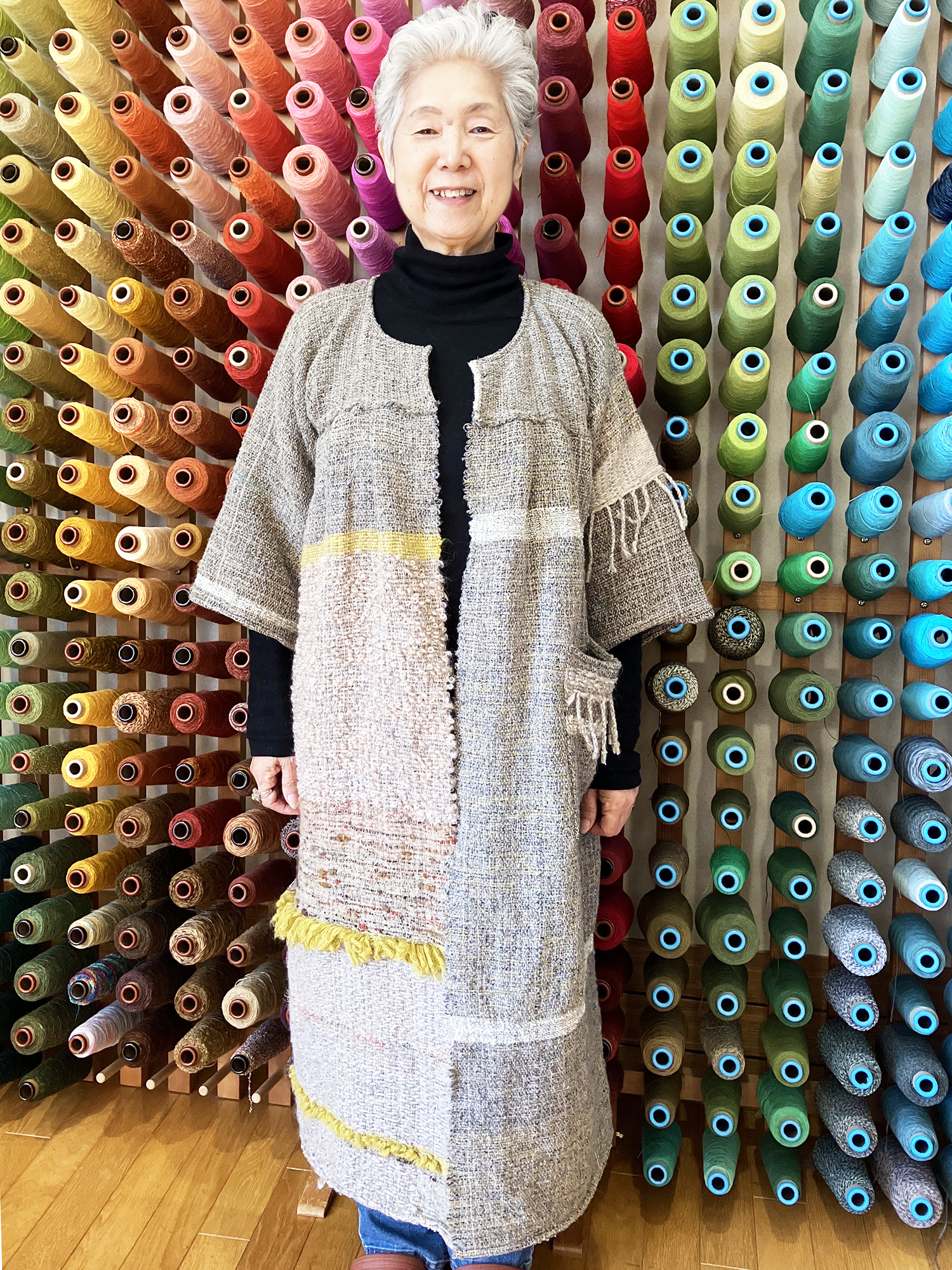 カンタンお仕立てのジャケットで、少しずつアレンジしながら何度も作っておられるお気に入りのレシピです。フリンジの使い方が素敵ですね。