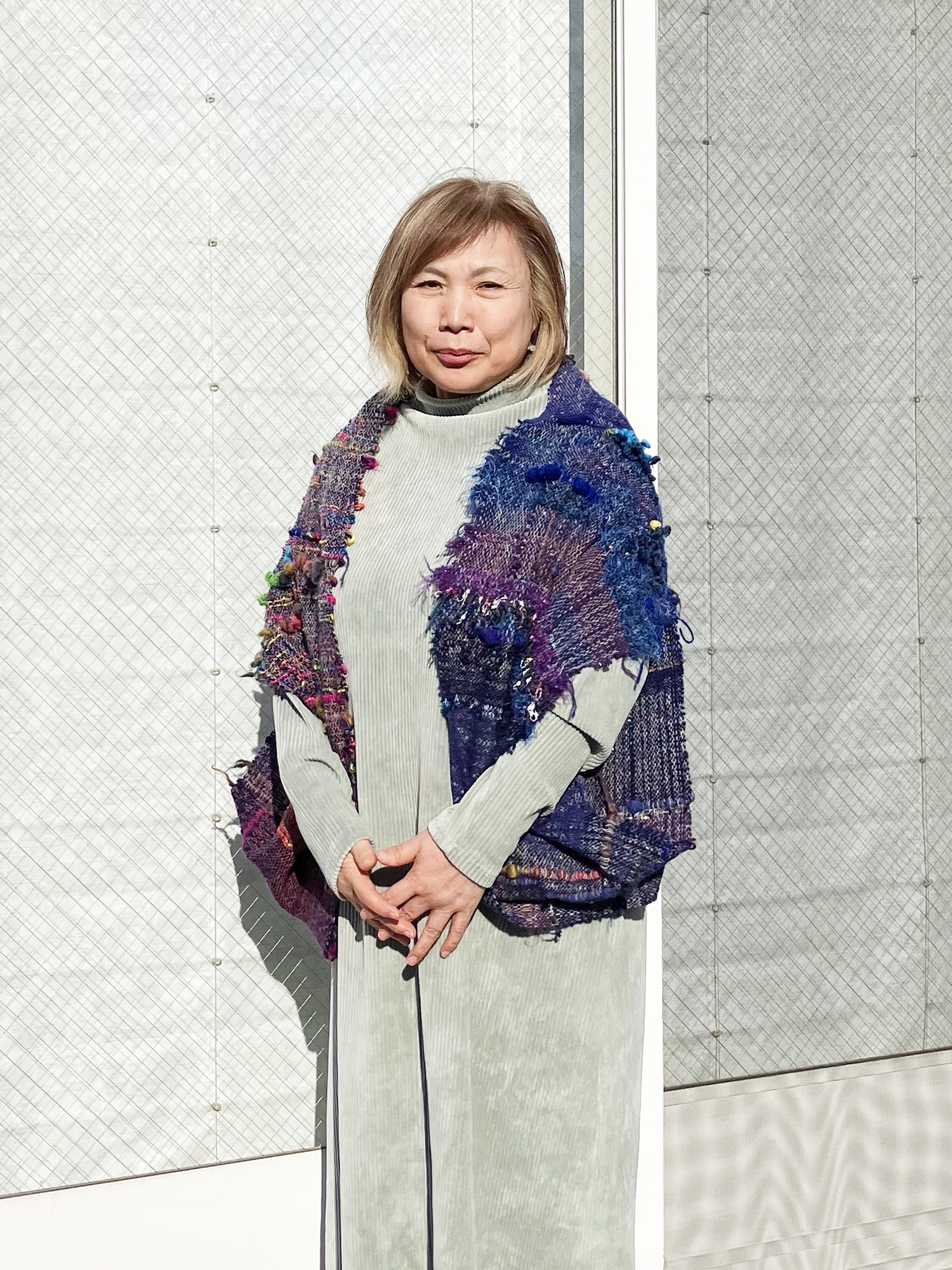 入塾される前から、お得意の洋裁でさをりの布で服を創られていましたが、今回は初めて、さをり織りとしての仕立てをされました。まずは、基本中の基本『マーガレット』から。