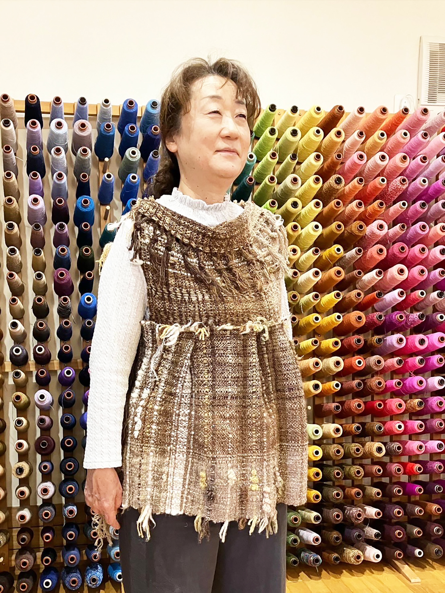 大好きな『絡み織り』をたっぷり散りばめた、ウールの優しい作品です。ところどころにある『耳出し織り』も効果的に使われているこのデザインは、シンプルで簡単なのに他にない雰囲気が素敵です。