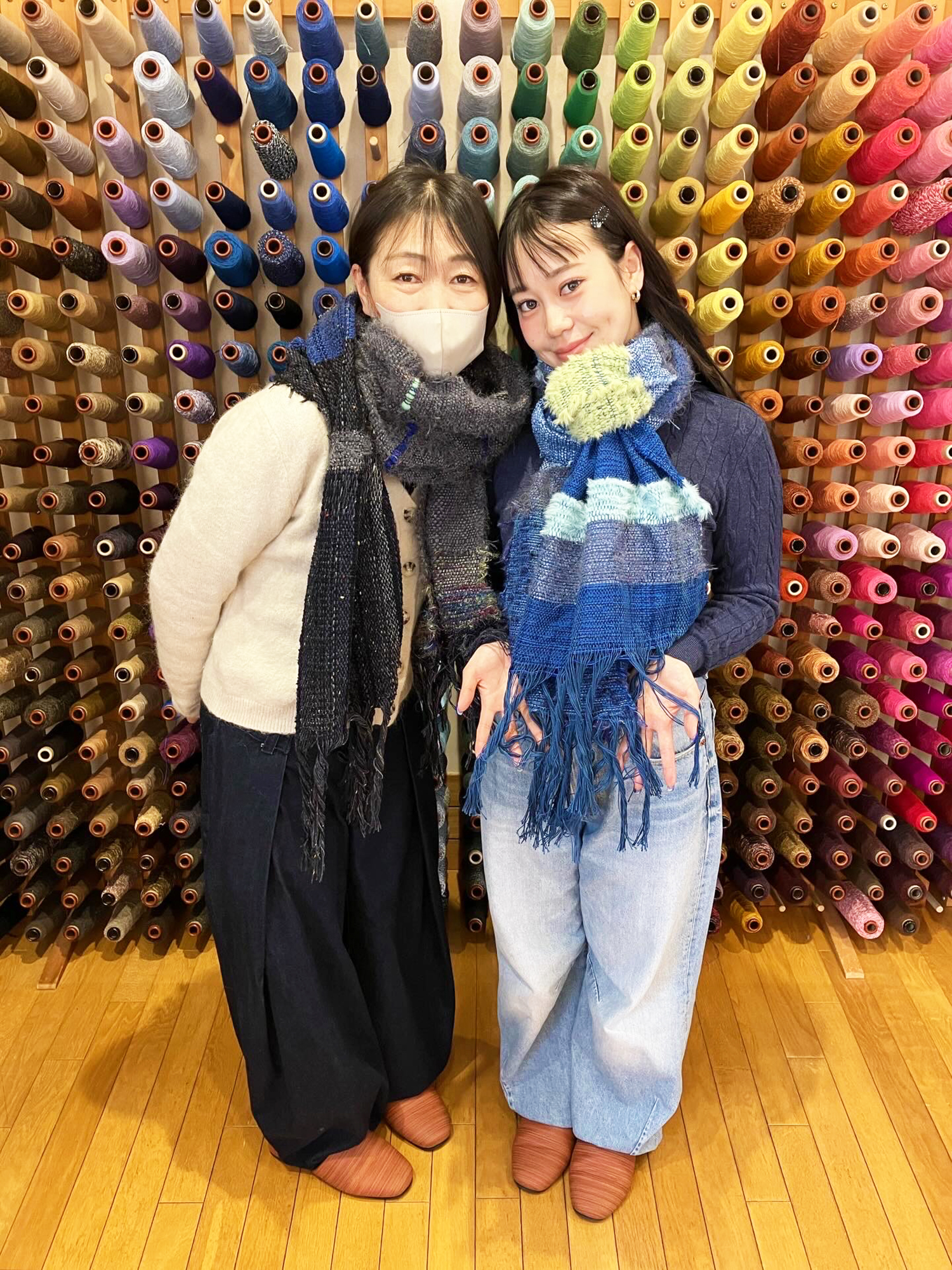 天候が悪い日にもかかわらず、バイクで颯爽とお越しになられた親子さん。『4時間でストールを織る』でしたが、想定よりはるかに短い時間で完成しました。