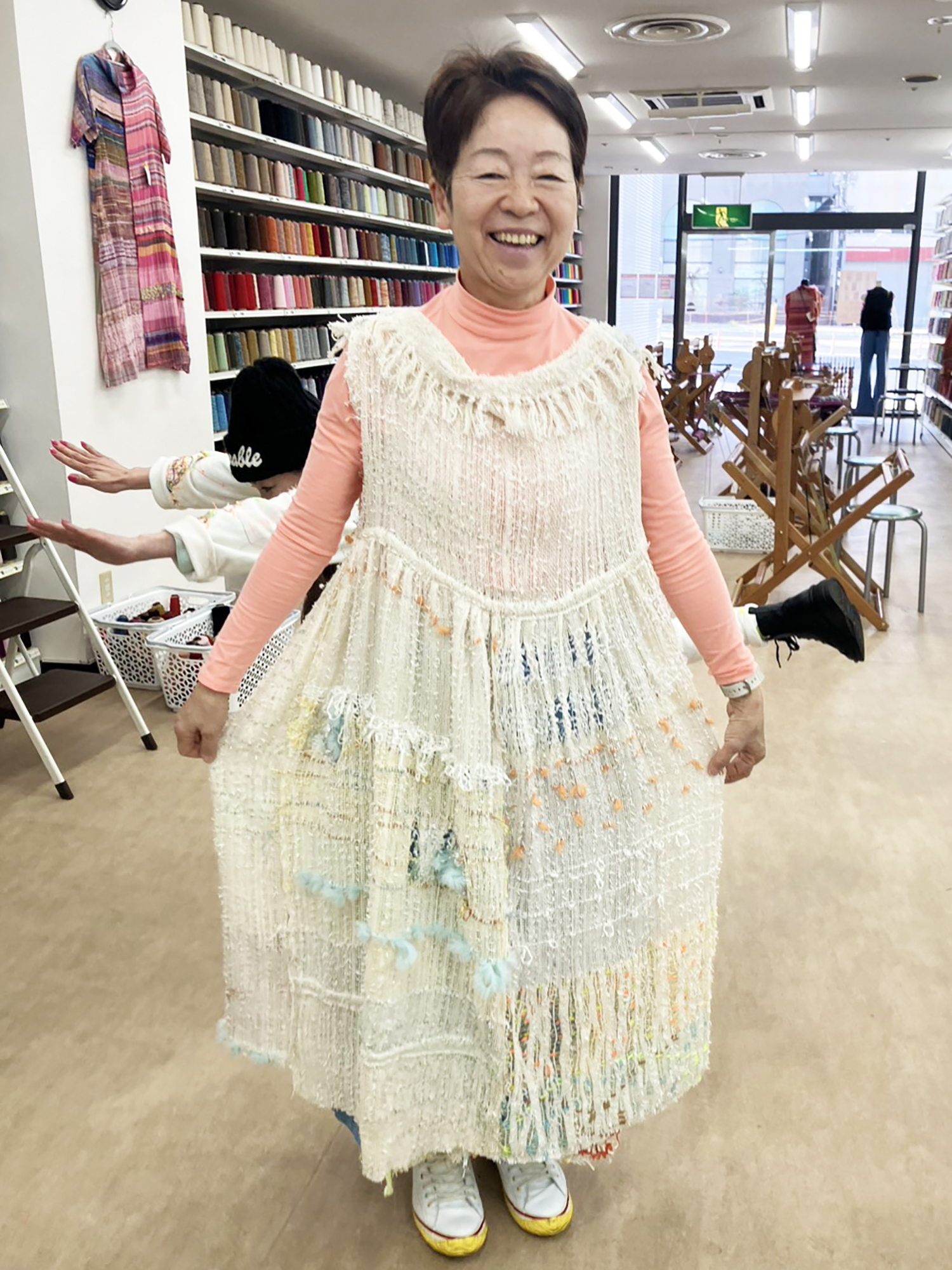 カシミヤで創ったワンピースの春バージョンを、とコットンを中心に織り上げられましたが、いざ仕立てようとすると布の長さが足りず…