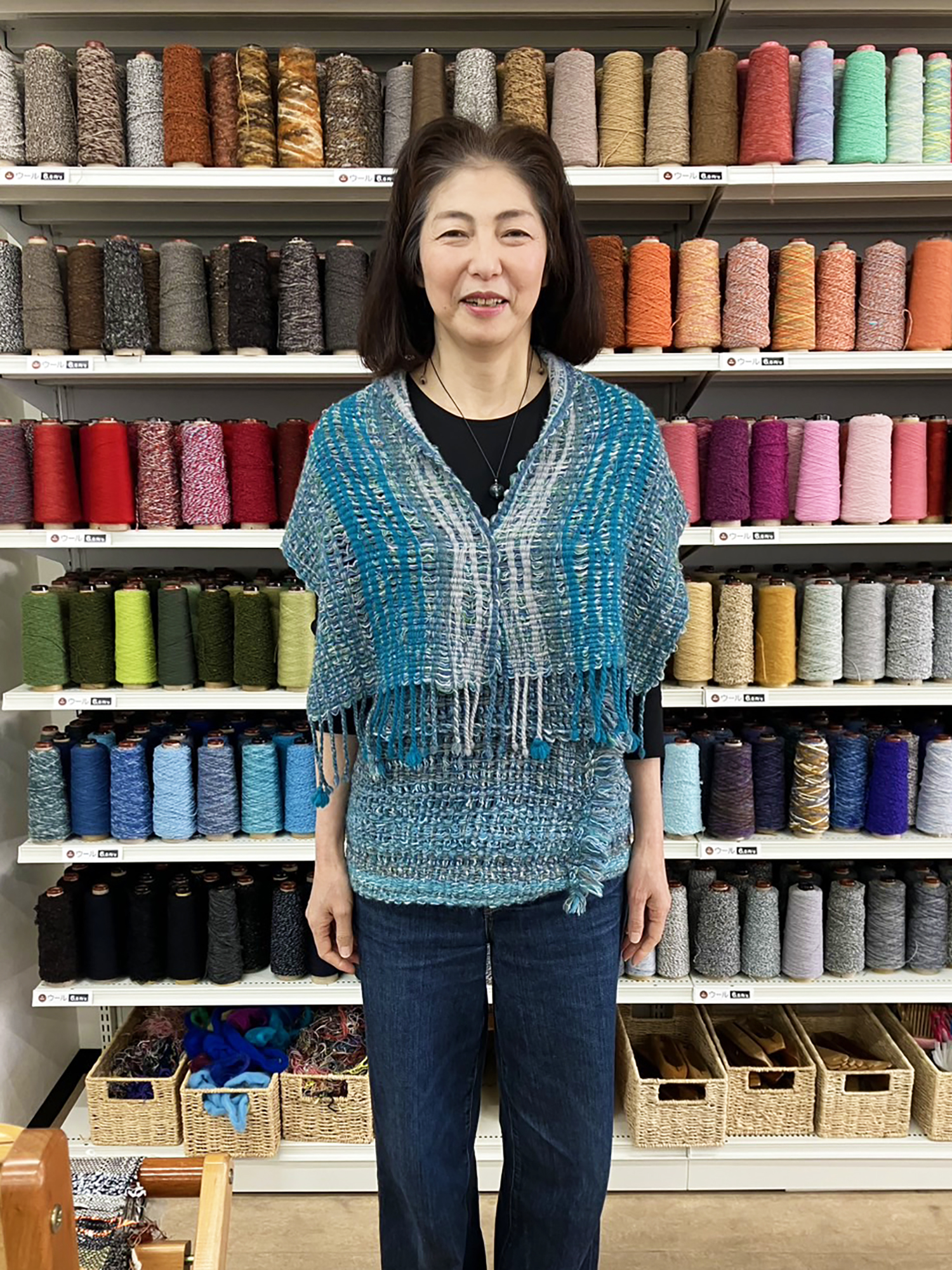 ウールで粗く織った、作為的にはできないタテ糸のゆらぎが生み出す表情豊かな作品です。